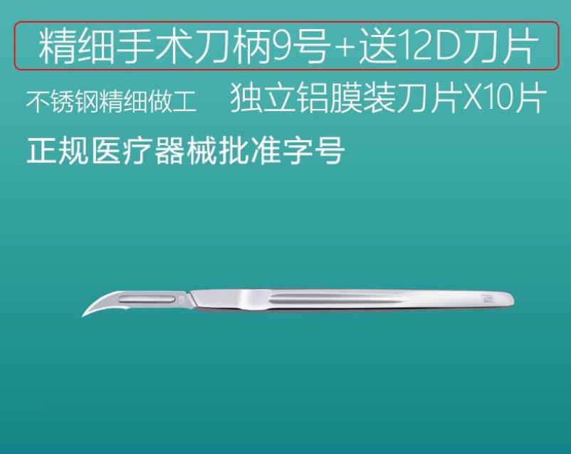 送刀片精细不锈钢医用手术刀柄9号柄+12D号刀片(10片)手术刀片