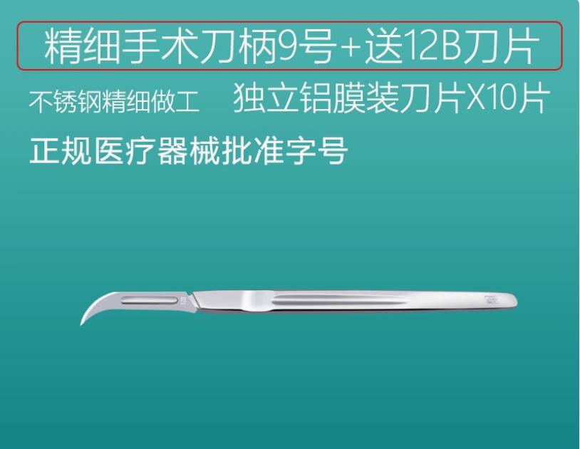 送刀片精细不锈钢医用手术刀柄9号柄+12B号刀片(10片)手术刀片