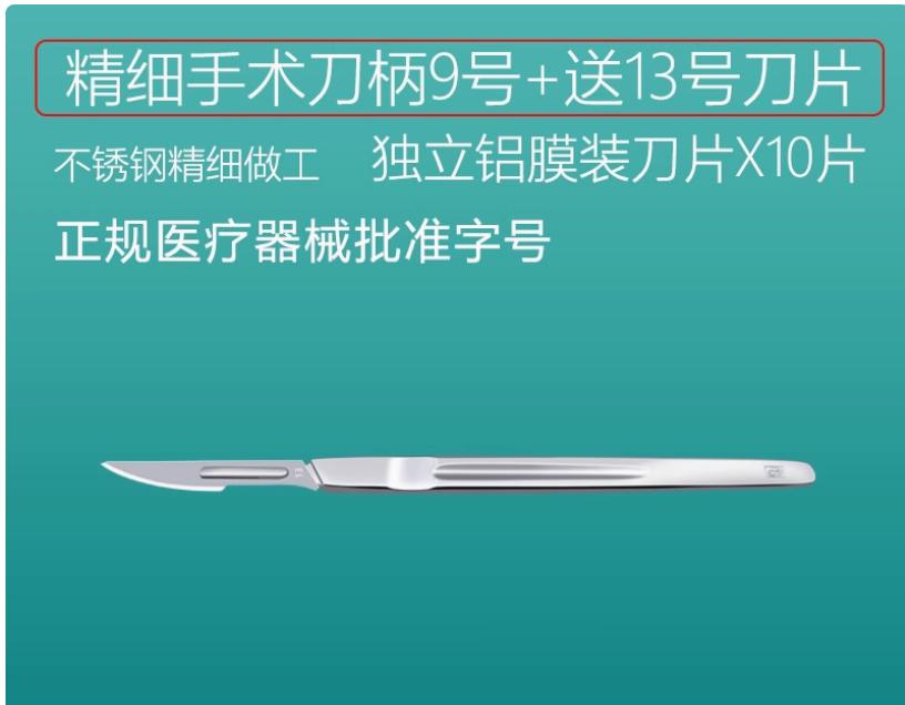 送刀片精细不锈钢医用手术刀柄9号柄+13号刀片(10片)手术刀片