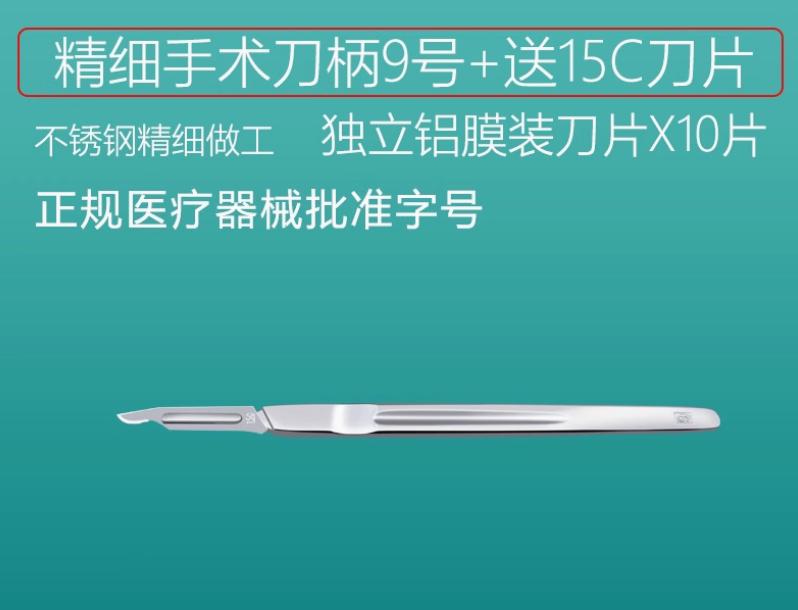 送刀片精细不锈钢医用手术刀柄9号柄+15C号刀片(10片)手术刀片