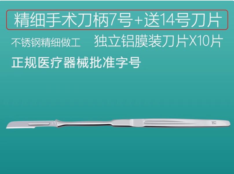 送刀片精细不锈钢医用手术刀柄7号柄+14号刀片(10片)手术刀片
