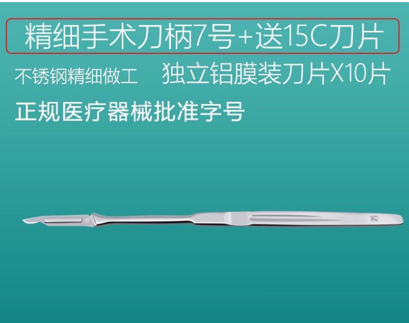 送刀片精细不锈钢医用手术刀柄7号柄+15C号刀片(10片)手术刀片