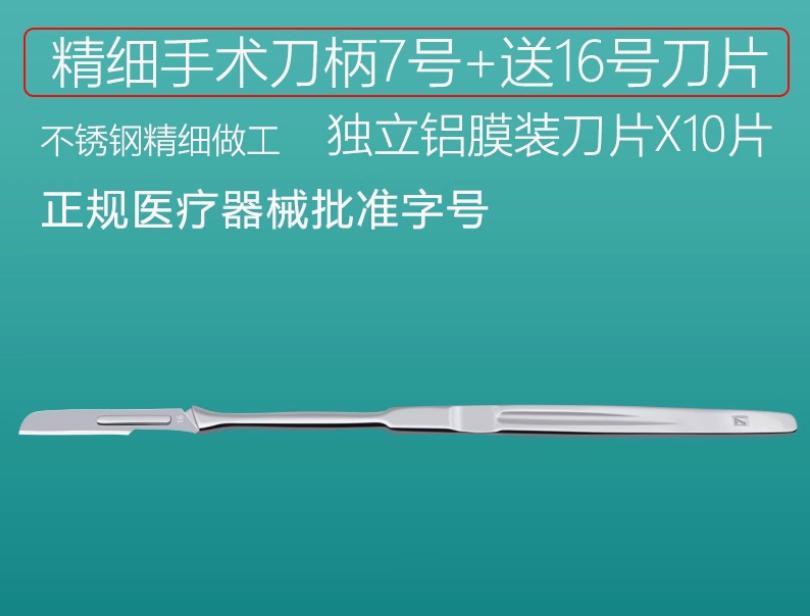 送刀片精细不锈钢医用手术刀柄7号柄+16号刀片(10片)手术刀片