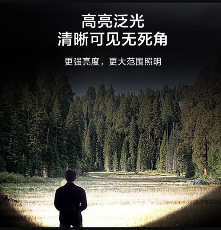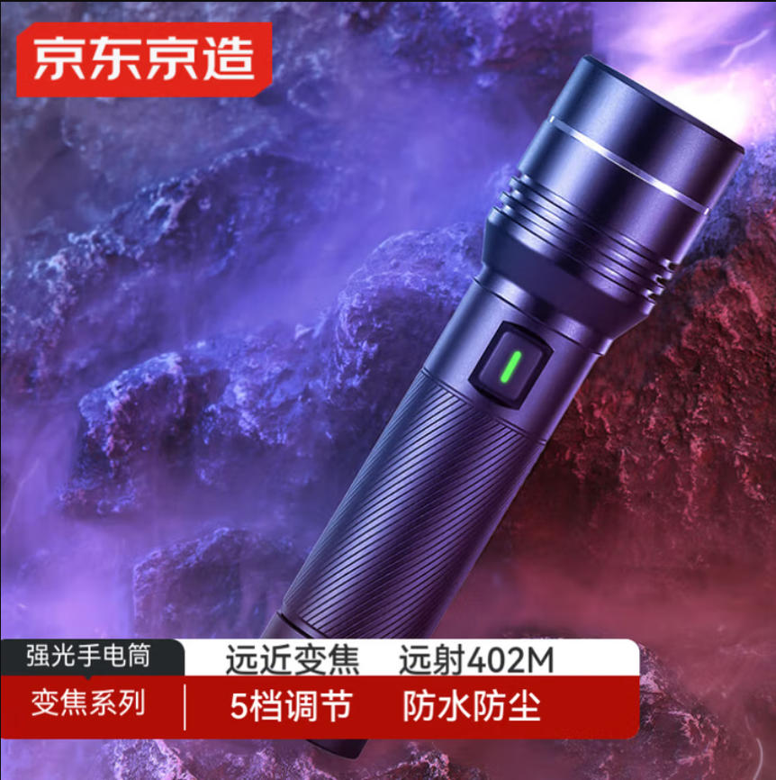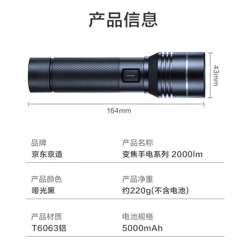 云杉生物 京东京造 强光 变焦 手电筒 2000流明 超长续航 野外生存 充电 多功能 家用便携