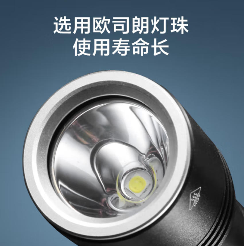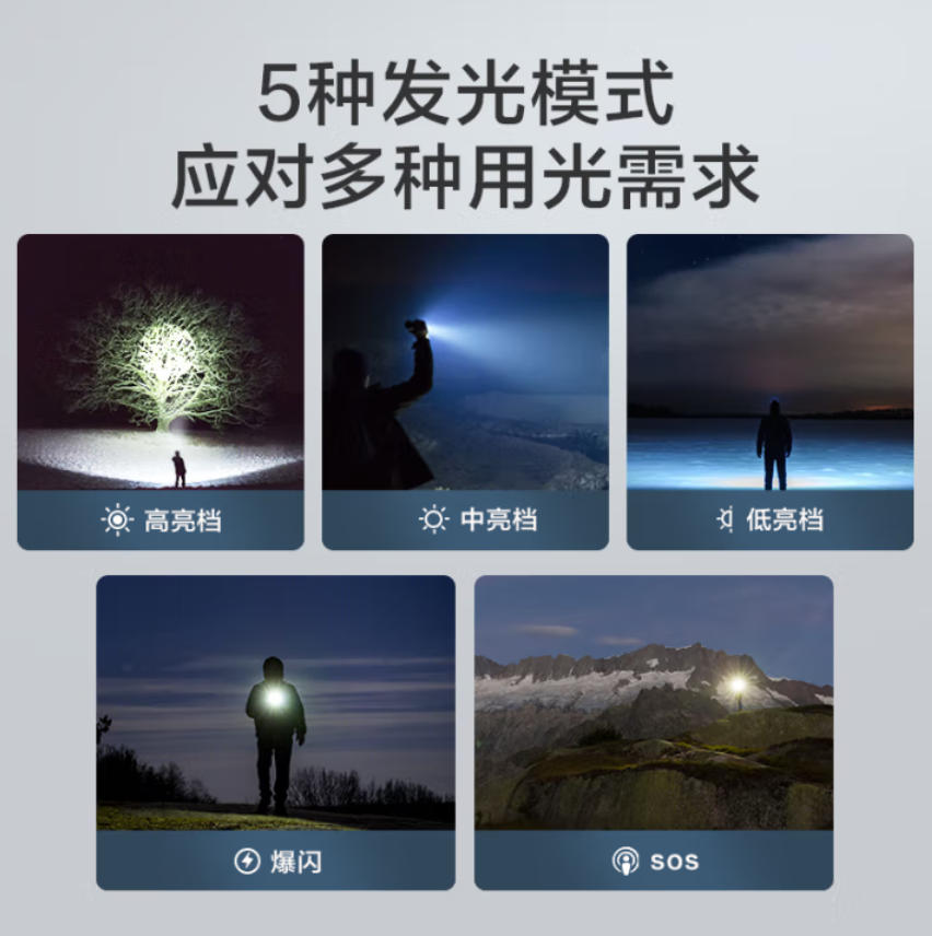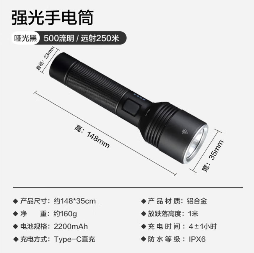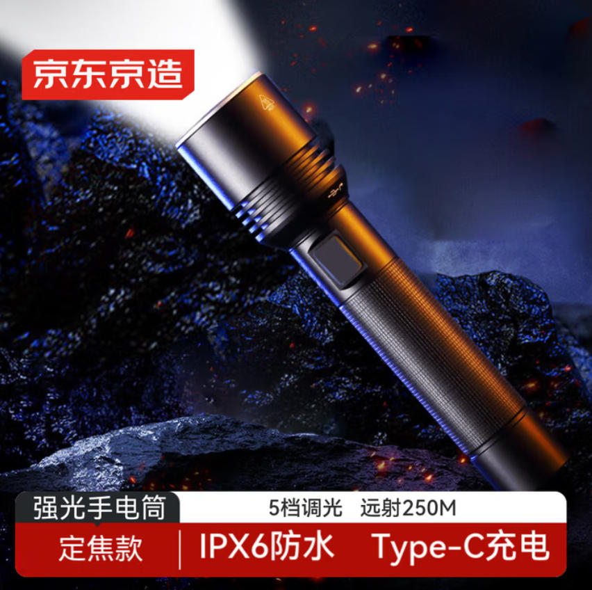 云杉生物 京东京造 手电筒 强光手电 500流明 Type-C充电 家用 便携 小型 户外应急灯