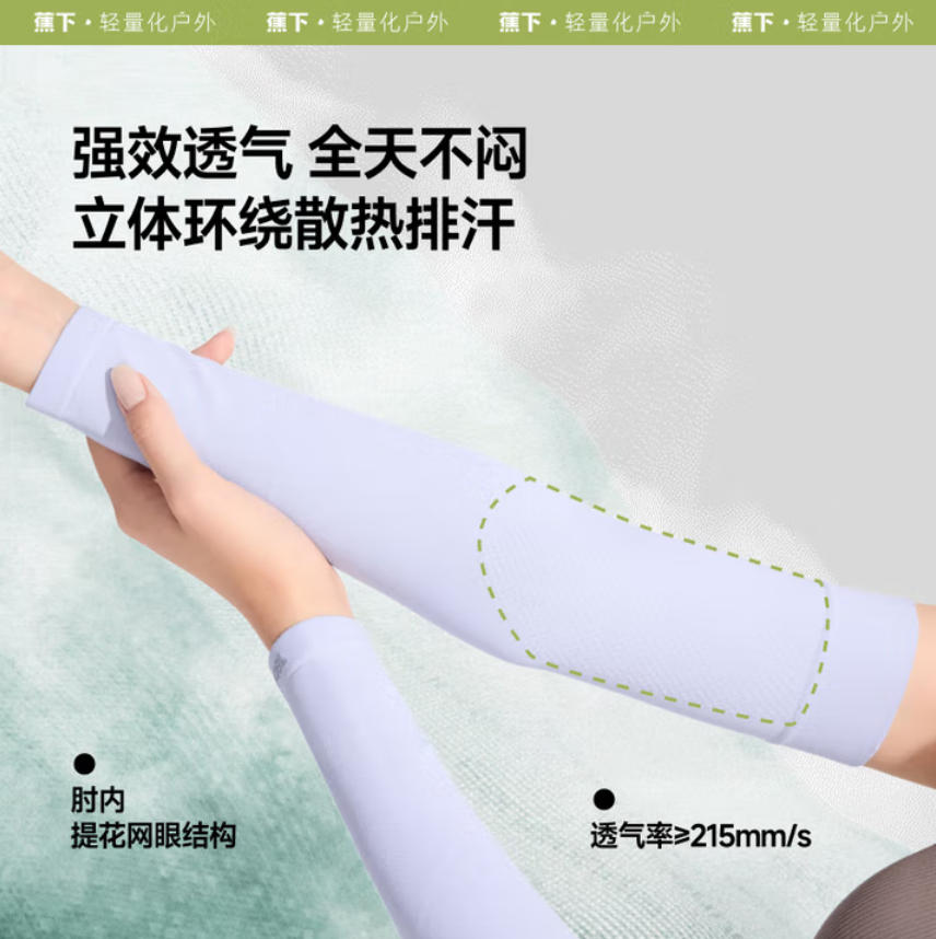 云栖漫心 蕉下(beneunder)高弹 防晒袖套 女袖套 男 防紫外线 防嗮 手臂 藤雾灰 浅月紫 白色 ES37024