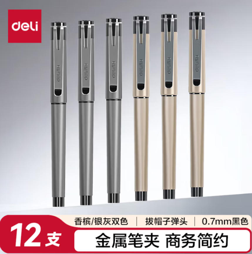 森淼办公 得力(deli)0.7mm子弹头商务中性笔水笔签字笔 办公用品 黑色12支/盒S96