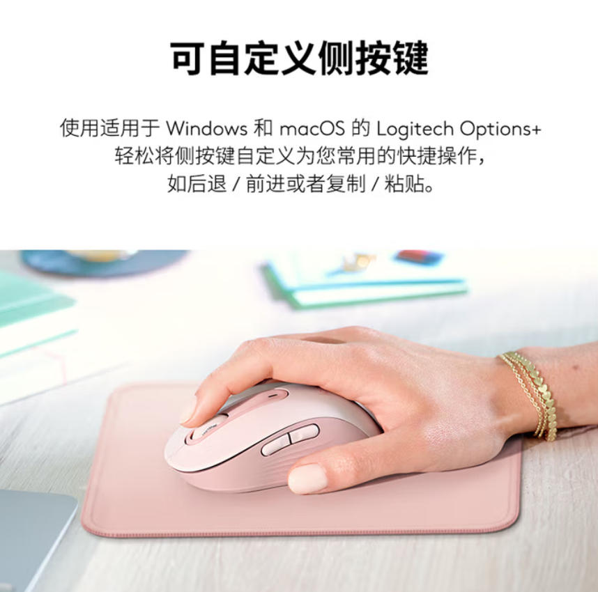 森淼办公 罗技(Logitech)M750M 通用版鼠标 无线鼠标 静音鼠标 对称鼠标 粉色 带Logi Bolt USB接收器