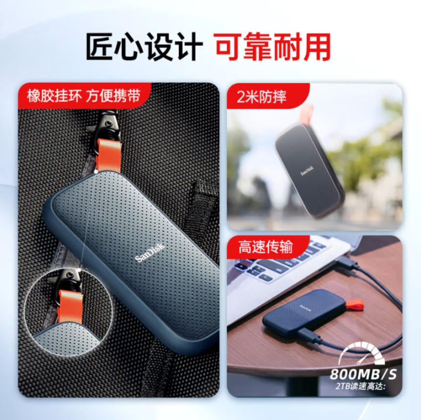 森淼办公 闪迪(SanDisk)1TB Type-c USB3.2移动固态硬盘(PSSD)E30高速 移动SSD 读速800MB/s 兼容手机笔记本电脑 另有2T 4T