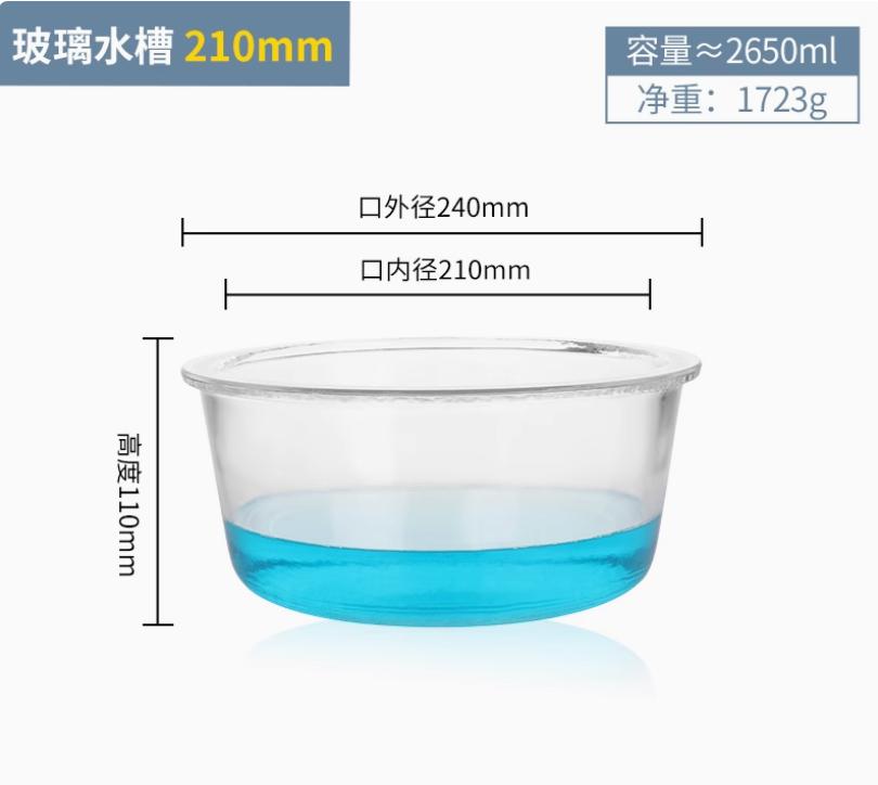 210mm圆形玻璃水槽实验室清洗槽玻璃酸缸集气槽玻璃盆