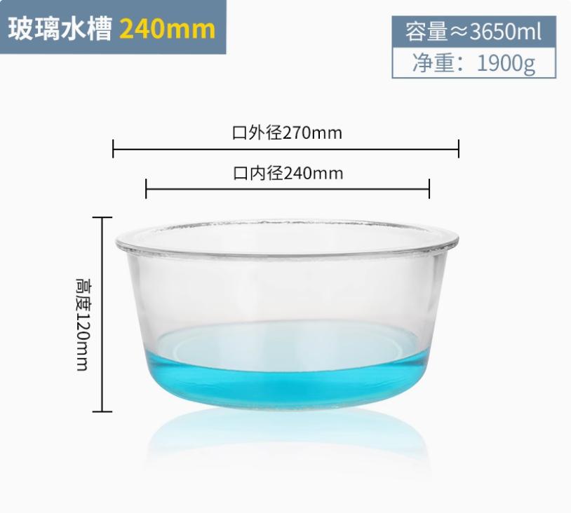 240mm圆形玻璃水槽实验室清洗槽玻璃酸缸集气槽玻璃盆