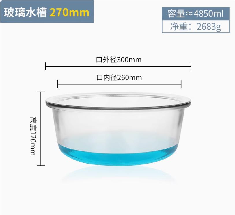 270mm圆形玻璃水槽实验室清洗槽玻璃酸缸集气槽玻璃盆