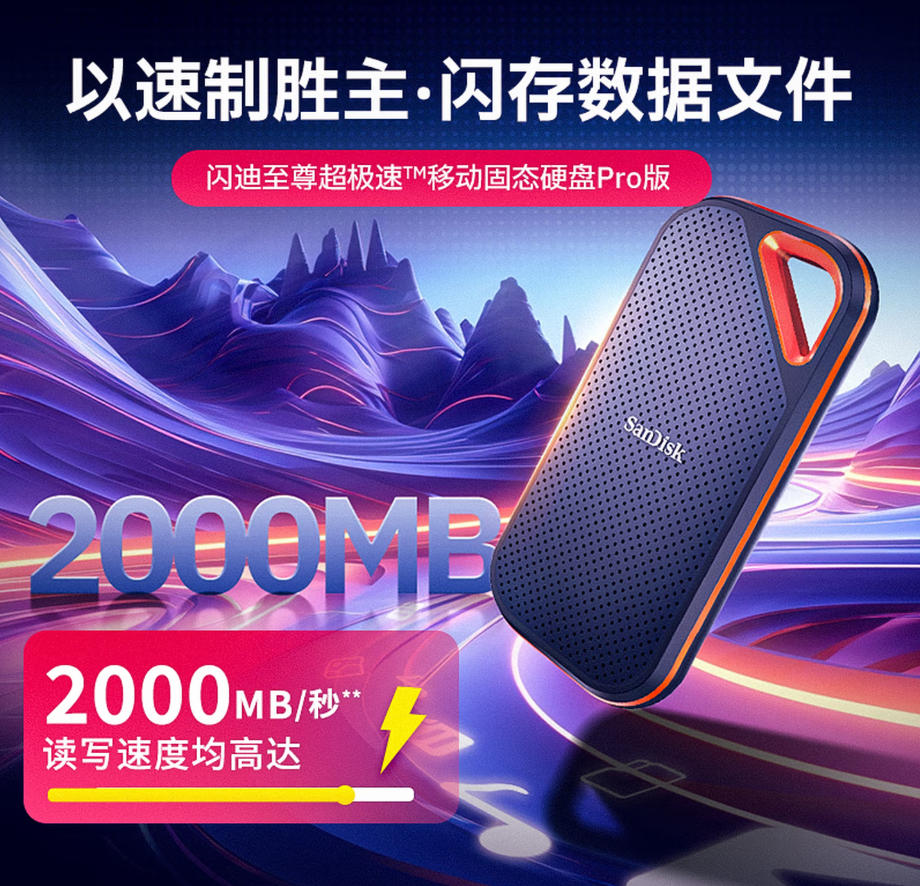 森淼办公 闪迪(SanDisk)1TB Nvme移动固态硬盘(PSSD)E81至尊超极速Pro版SSD 读速2000MB/s 手机直连笔记本外接 三防保护