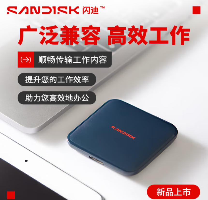 闪迪(SanDisk)ELE™2TB 移动固态硬盘(PSSD)type-c接口 实验数据存储 会议资料 小巧便携 手机直连 笔记本两用外接 办公存储