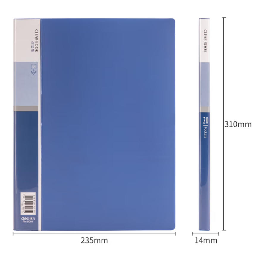 森淼办公得力(deli)A4/20页资料册文件活页收纳册文件夹 插页袋学生试卷收纳袋奖状收集册孕检收纳册办公文件保护5002