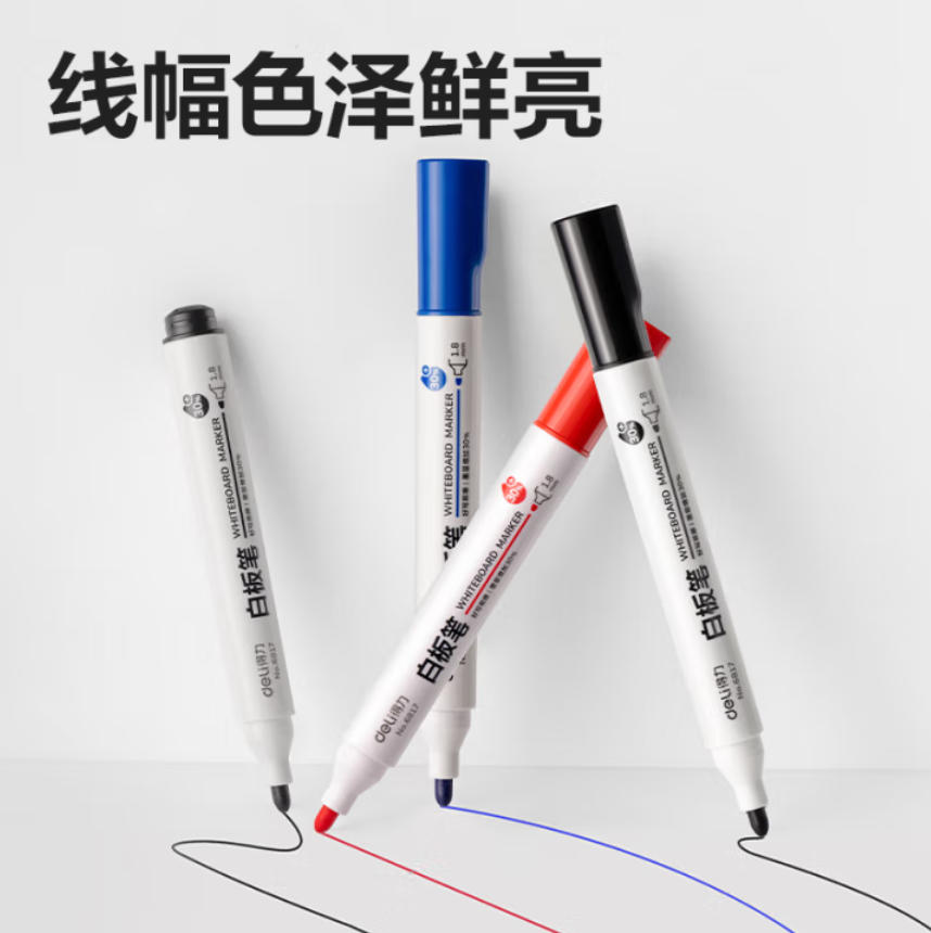森淼办公 得力(deli) 白板笔套装 可擦易擦书写顺滑 办公文具会议教学 7黑2蓝1红混色 10支/盒 33176