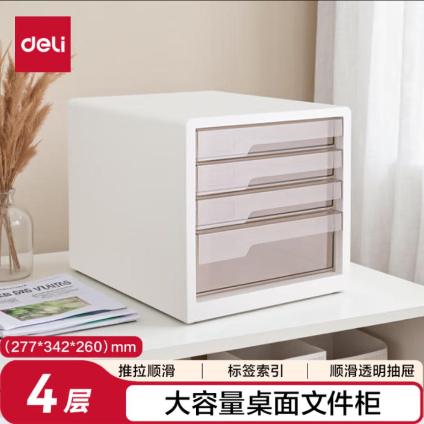 森淼办公 得力四层办公桌书桌桌面收纳盒柜箱文件柜抽屉式A4资料/档案柜带索引标签学科试卷分类办公用品白