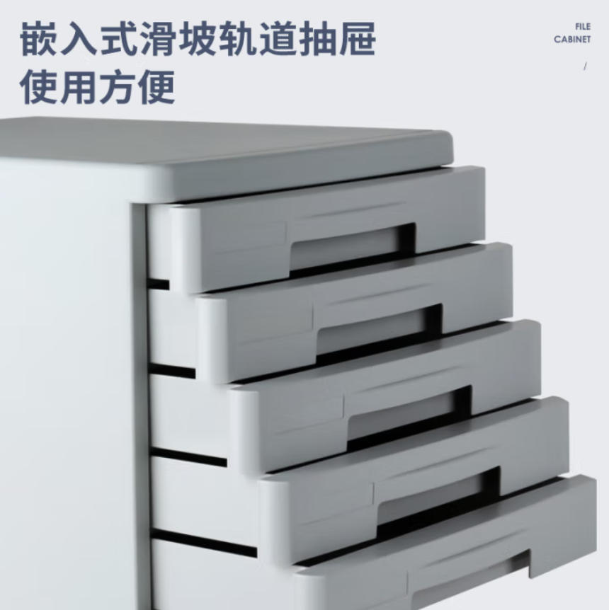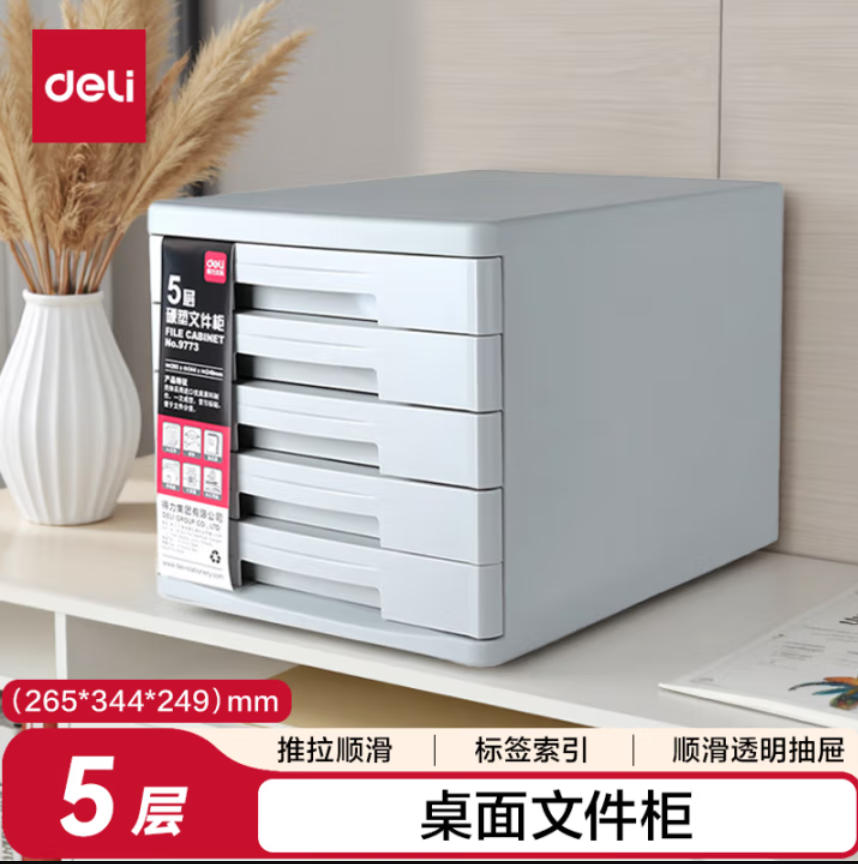 森淼办公 得力(deli)5层办公桌书桌桌面收纳盒文件柜收纳柜抽屉式 A4拉手资料 带索引标签学科试卷分类收纳 灰色9773