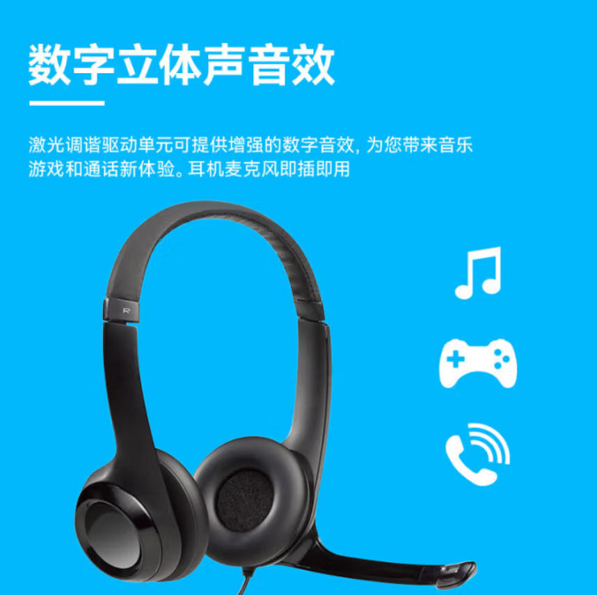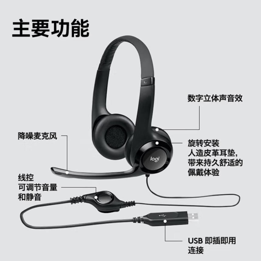 森淼办公 logitech 罗技H390 企业级有线耳机耳麦 USB耳机头戴式立体声降噪耳麦笔记本办公 石墨黑 升级版