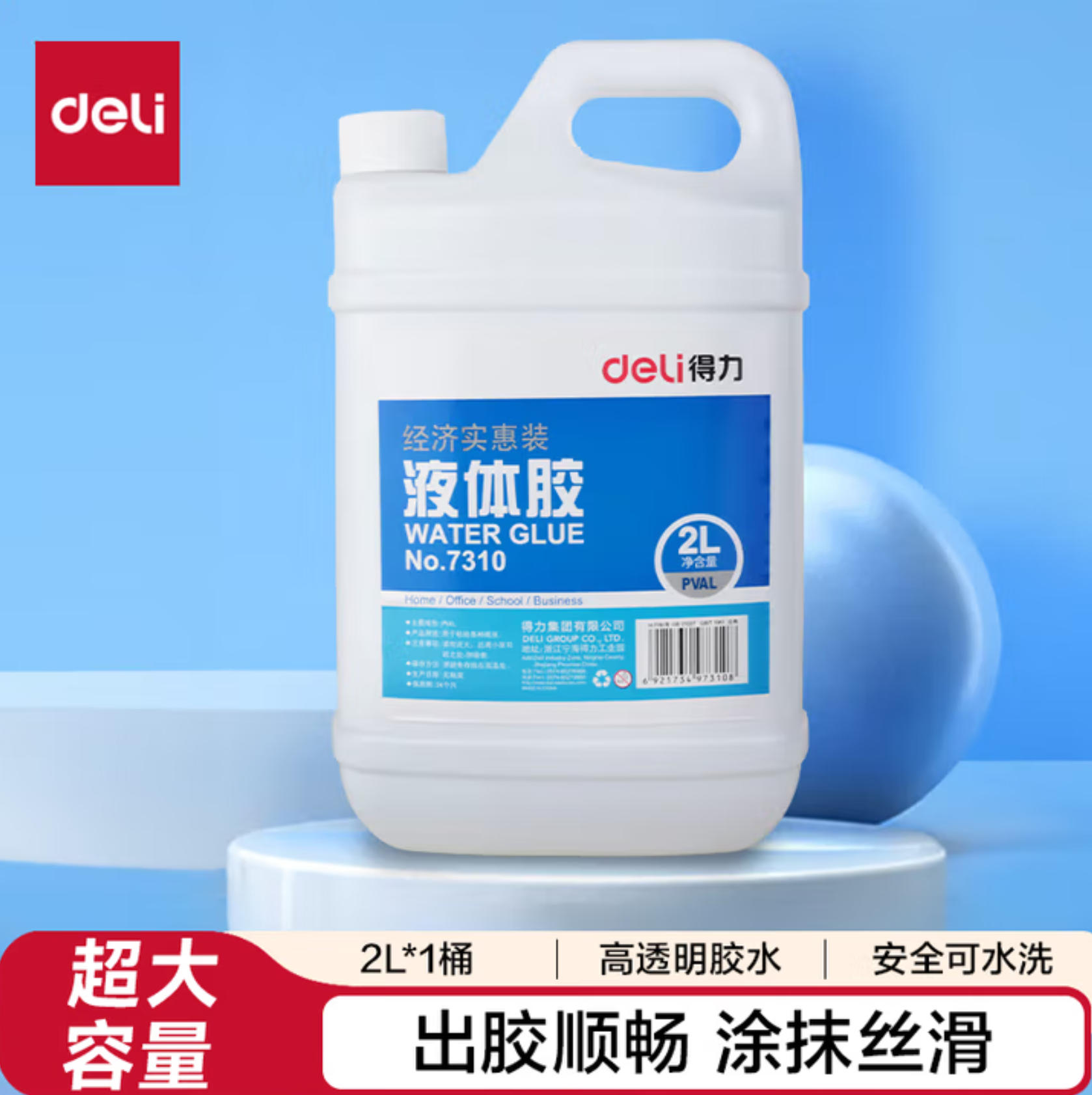 森淼办公 得力(deli)2L瓶装高粘液体胶 办公用品高透明胶水 学生文具材料胶水 开学必备学习用品 1瓶 7310