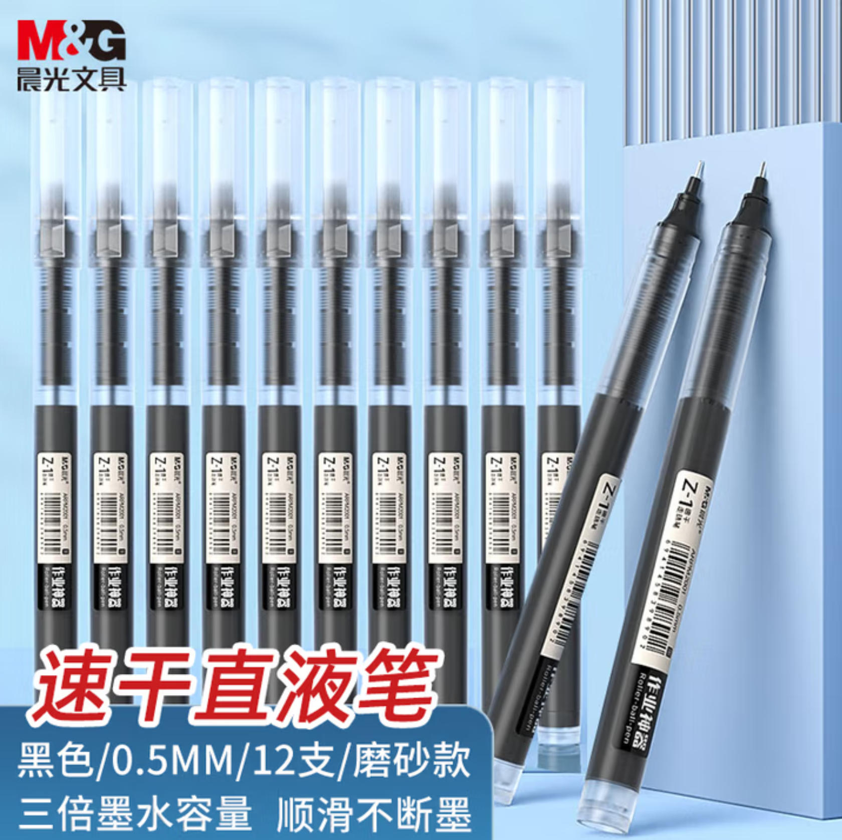 森淼办公 晨光(M&G)文具直液式走珠笔速干笔签字笔 0.5mm全针管中性笔 学生商务水笔办公用品 黑色 12支/盒 ARPM2001