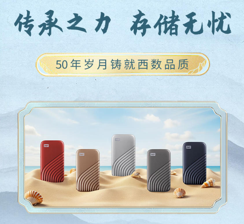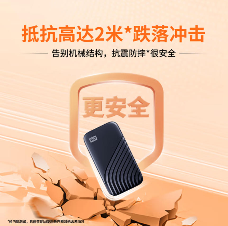 莱英办公 西部数据(WD)1TB NVMe 移动固态硬盘(PSSD)My Passport随行SSD type-c接口 1050MB/s 手机直连笔记本两用外接