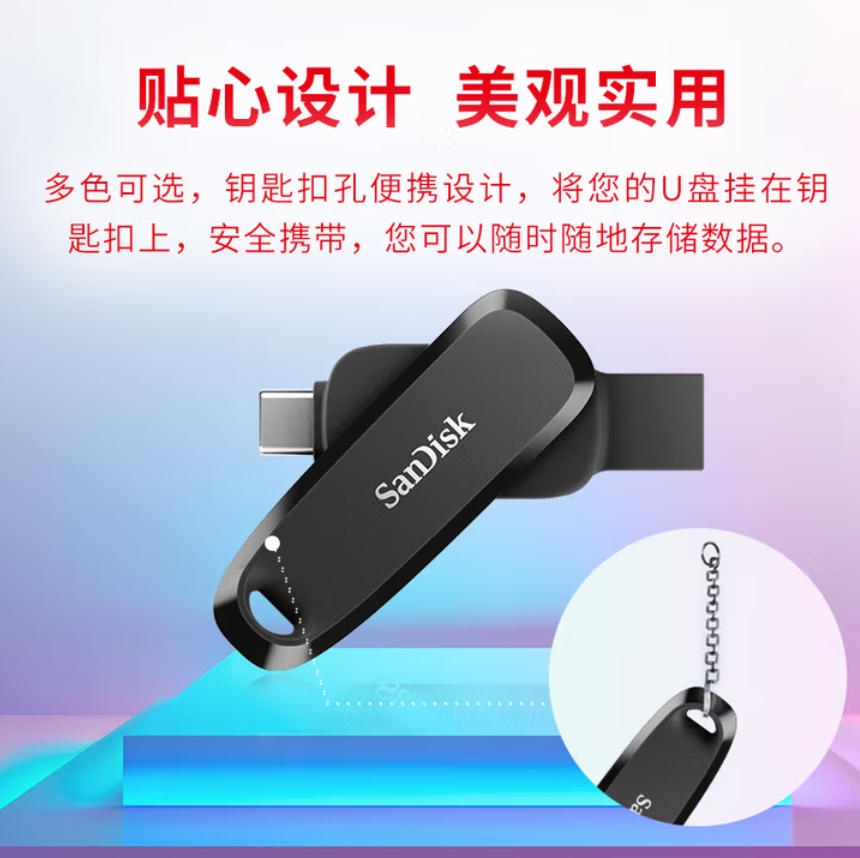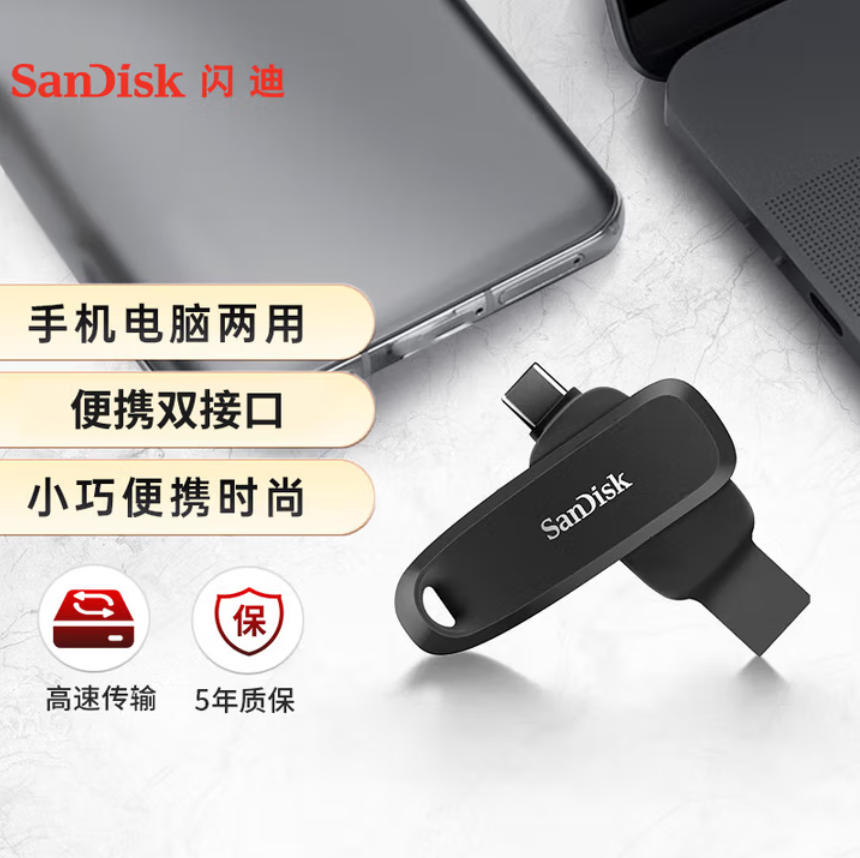 云栖漫心 闪迪(SanDisk)128GB Type-C USB3.2 手机U盘DDC6黑色 手机电脑存储盘 双接口大容量优盘