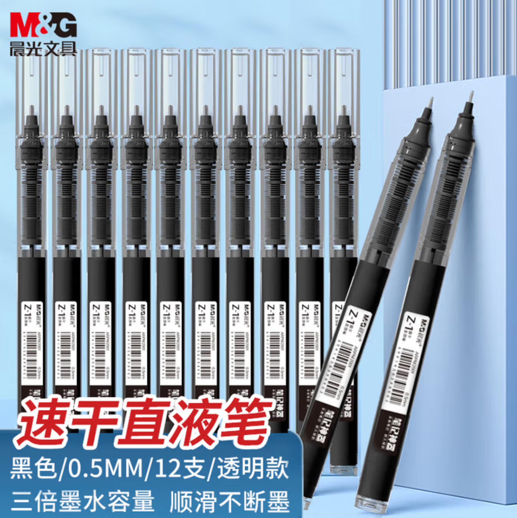 森淼办公 晨光(M&G)直液式走珠笔速干笔签字笔 0.5mm全针管中性笔 学生商务水笔办公用品 黑色 12支/盒 ARPM2002A
