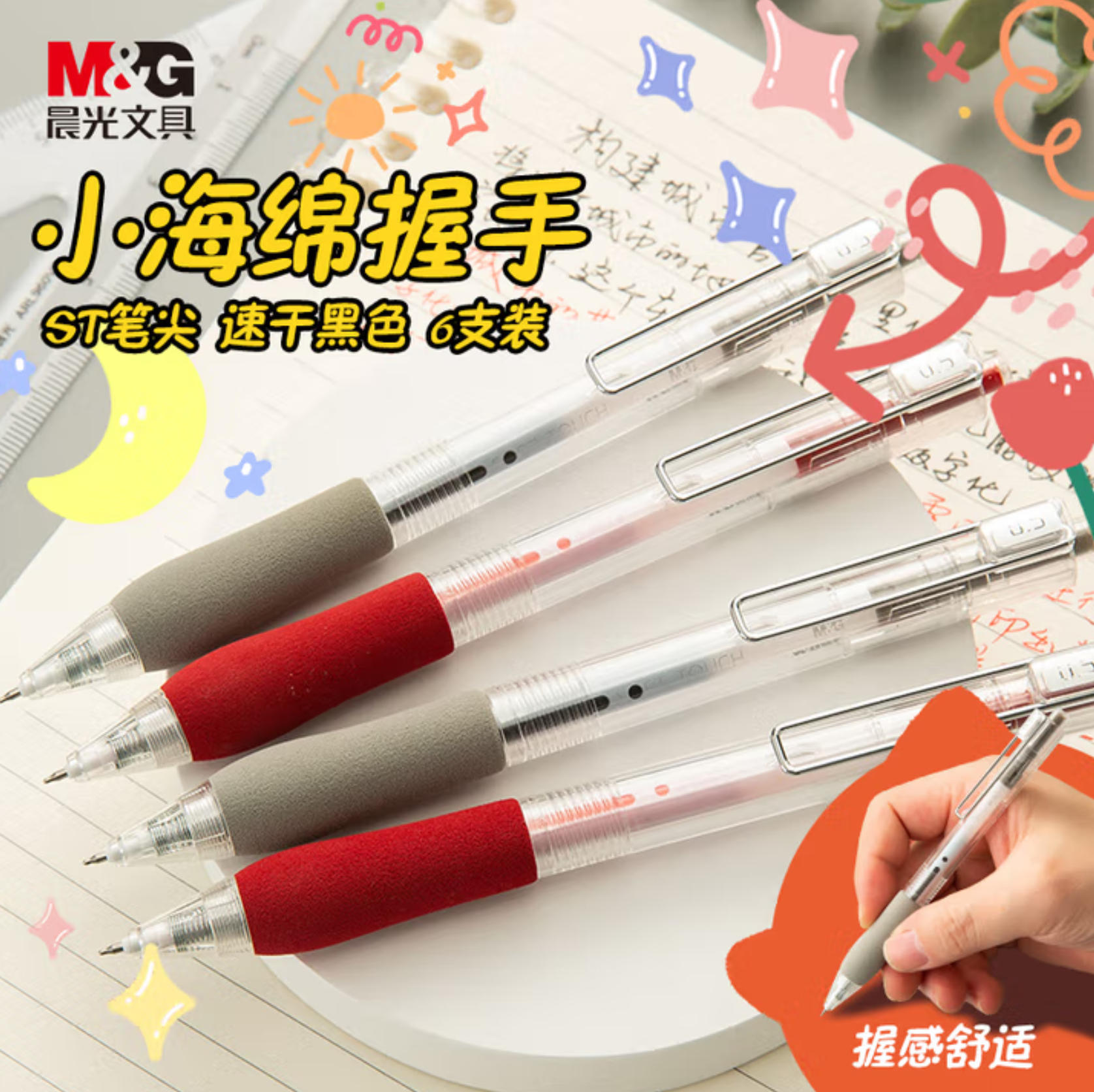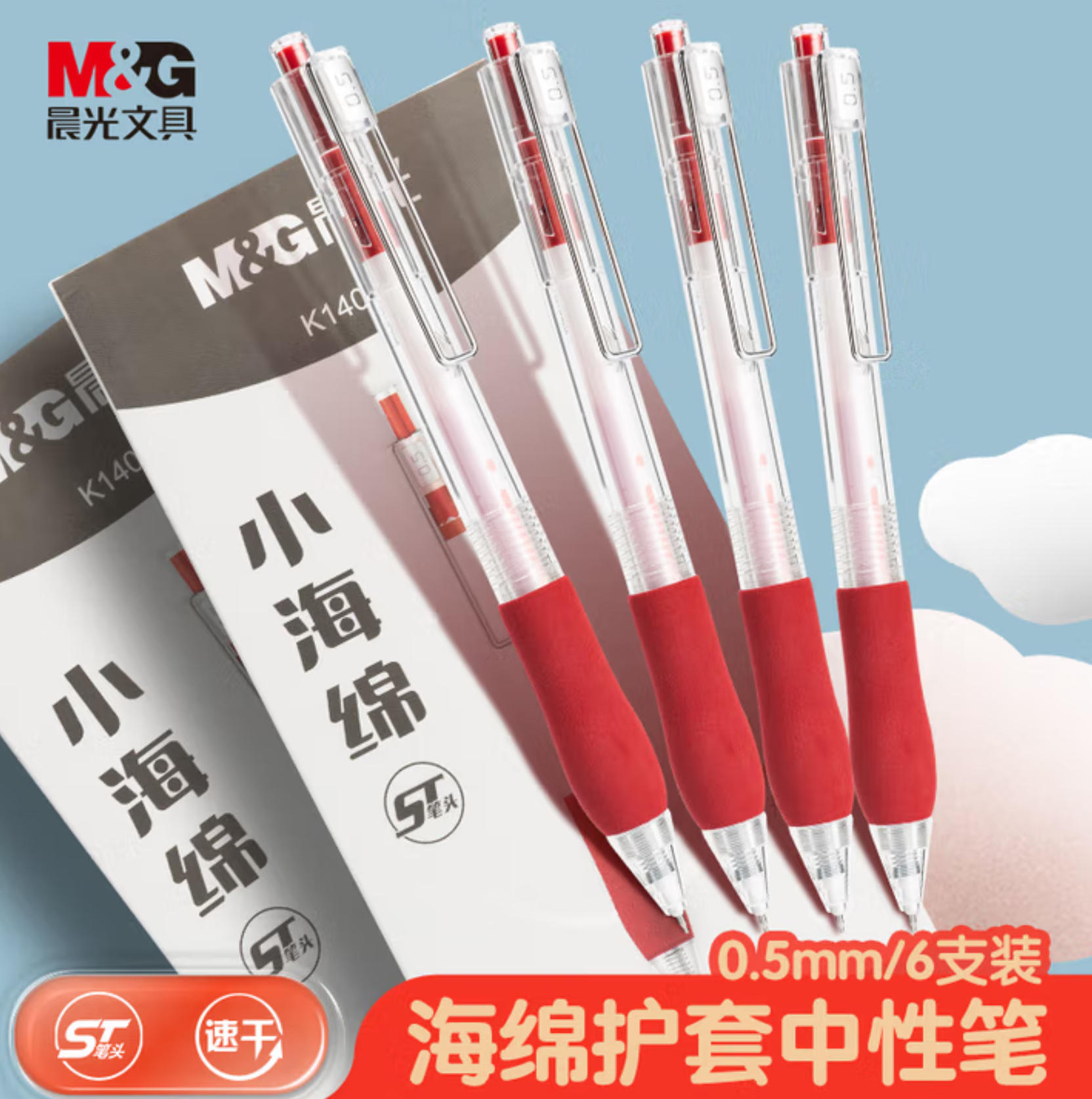 森淼办公 晨光(M&G) 文具 0.5mm 刷题笔 速干 ST头 按动中性笔 升值防滑 海绵护套 学生考试办公签字红笔6支 AGPK1401C考研
