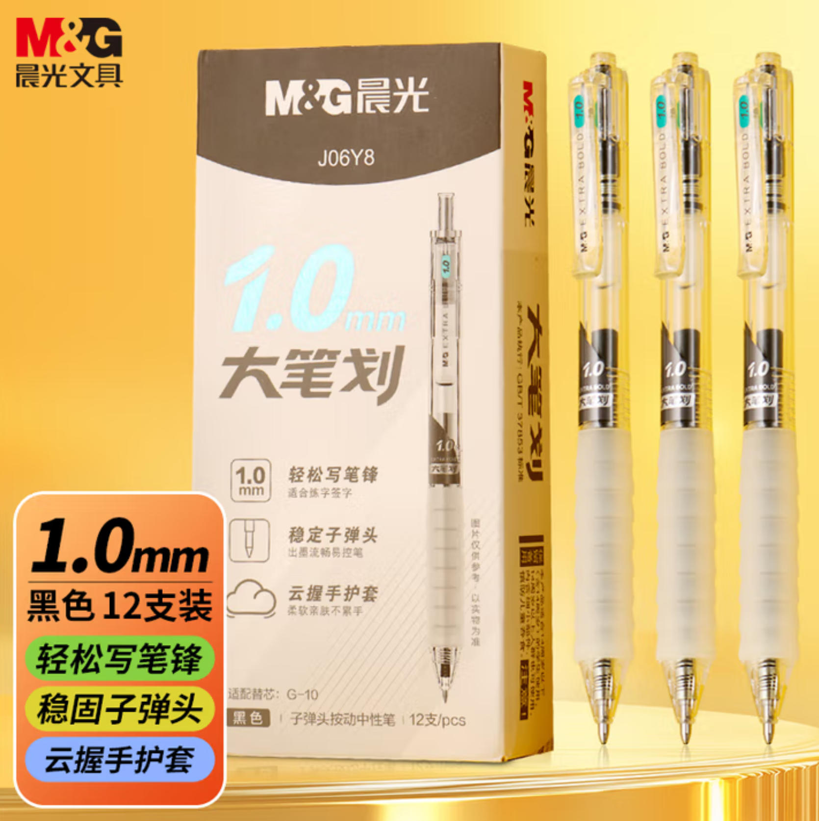 森淼办公 晨光(M&G)文具 云握手 黑色按动中性笔1.0mm 刷题 考试 专用水笔 商务办公签字笔 大笔画12支/盒 AGPJ06Y8