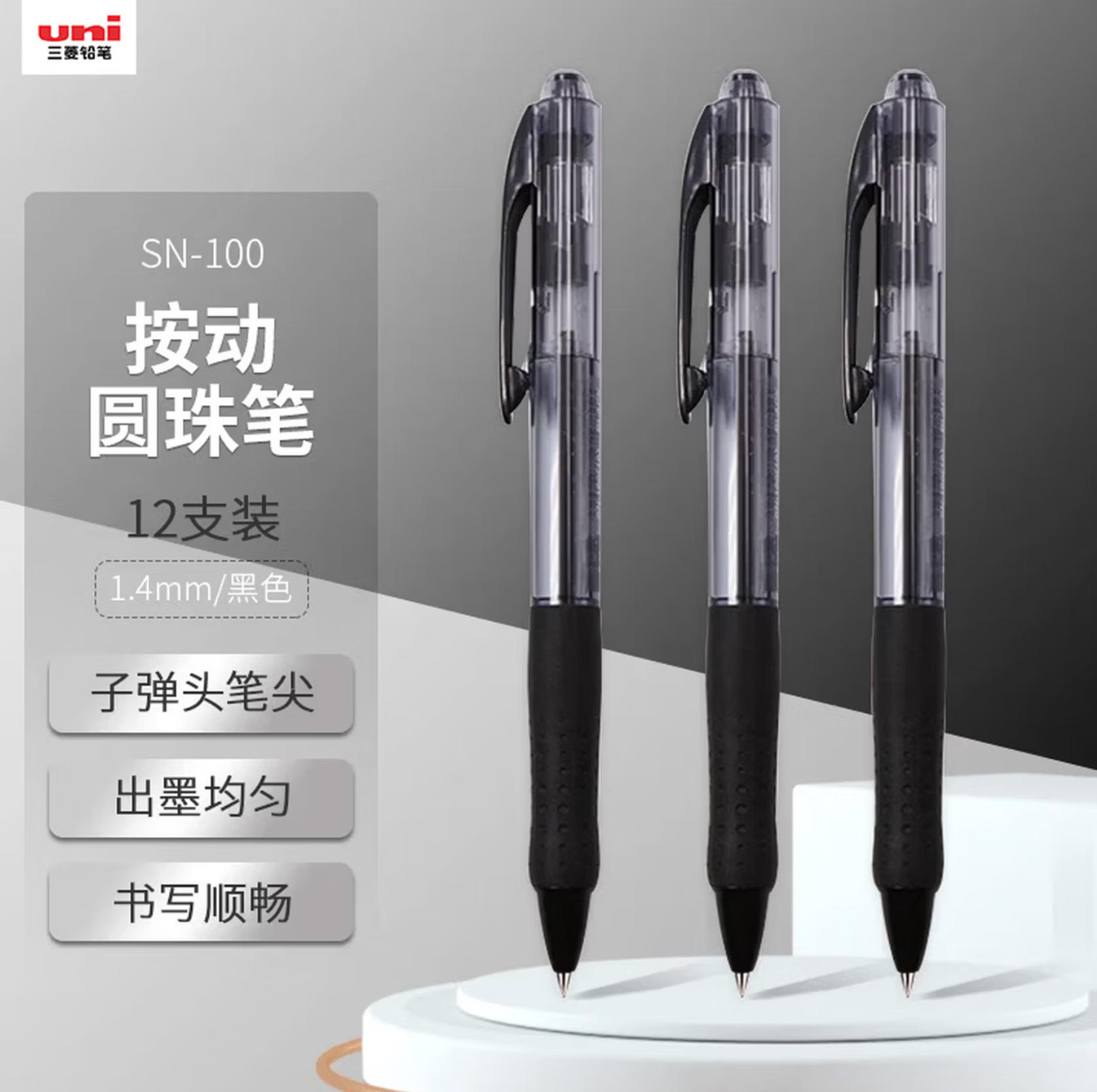 莱英办公 uni三菱(uni)SN-100按动式圆珠笔 1.4mm圆珠笔 学生用笔 办公文具签字笔 黑色 蓝色 红色 12支装 下单请备注颜色