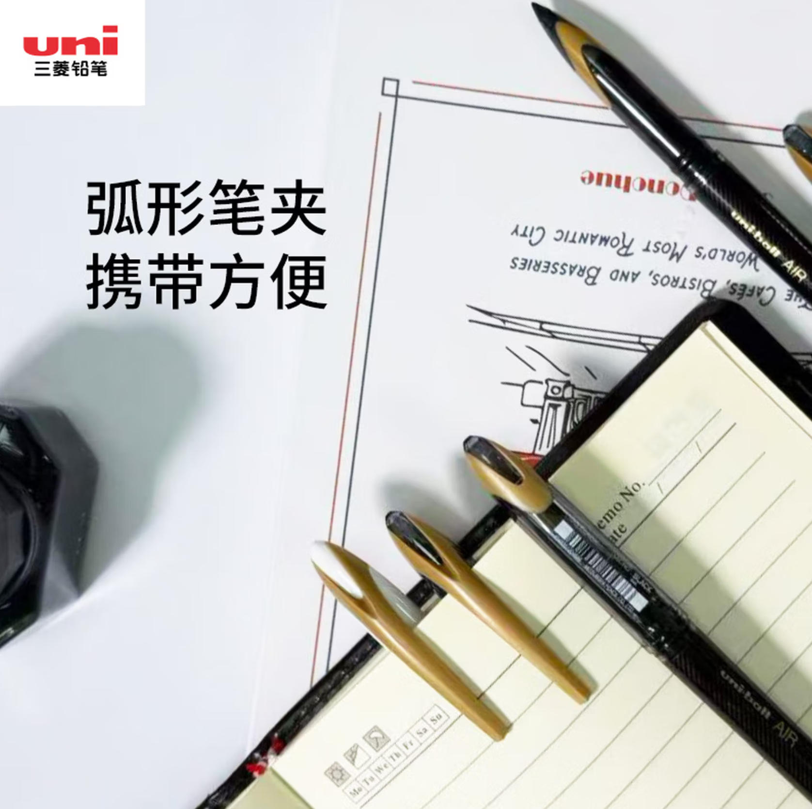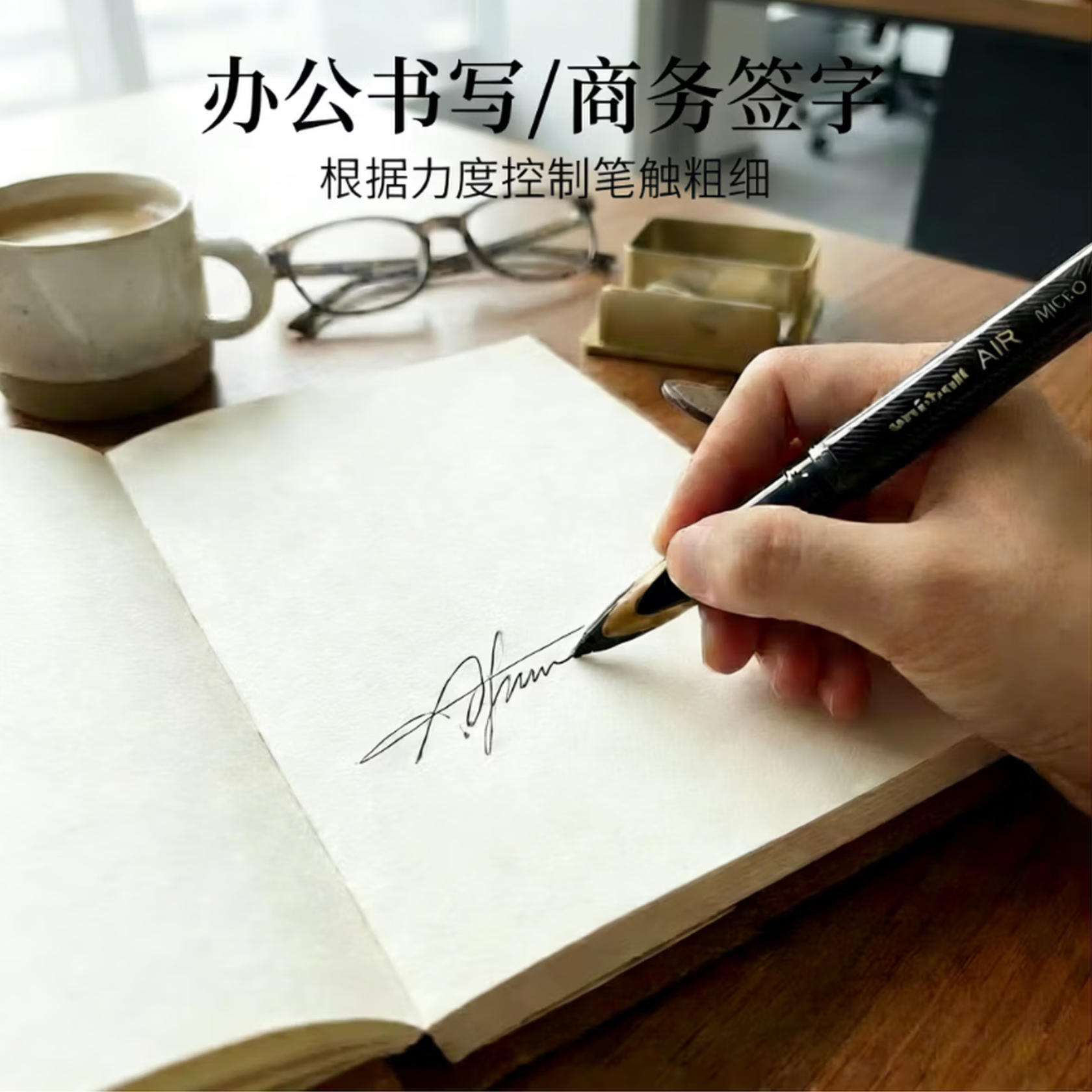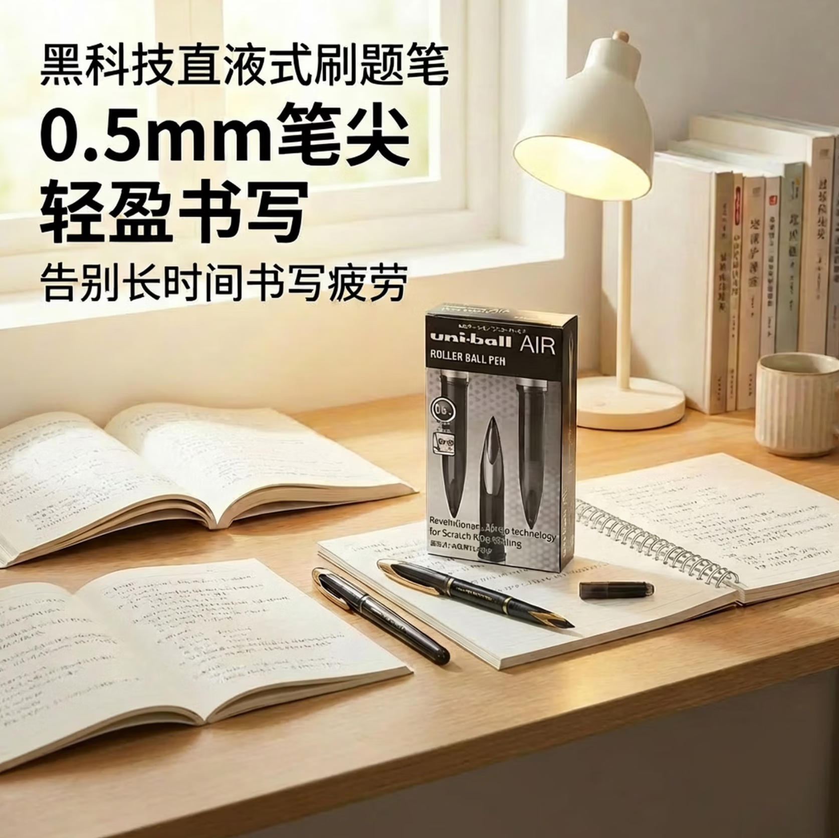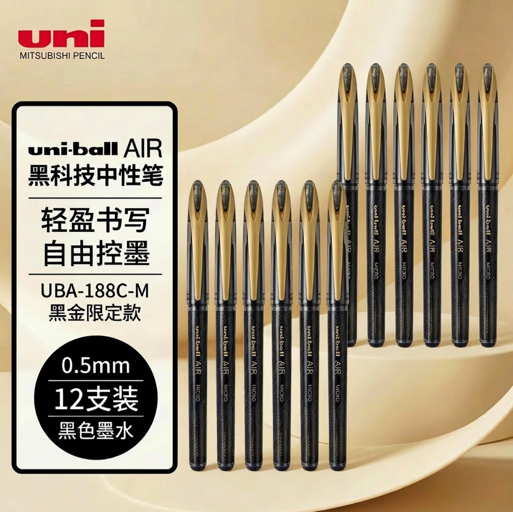 莱英办公 uni三菱 uni-ballAIR 黑科技 黑色中性笔0.5签字笔 商务 直液式水笔 刷题笔 黑金 UBA-188M 12支