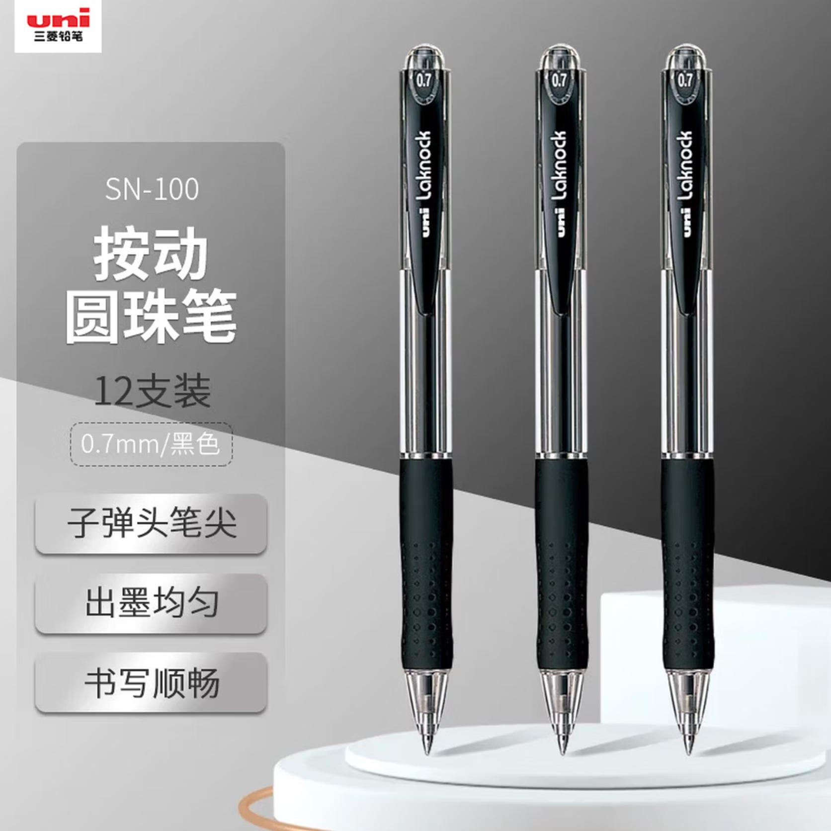 莱英办公 uni三菱(uni)SN-100 按动式 圆珠笔 0.7mm圆珠笔 学生用笔 办公文具 签字笔 黑色 蓝色 红色 12支装 下单请备注颜色