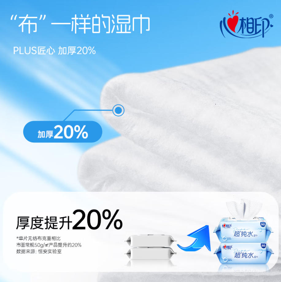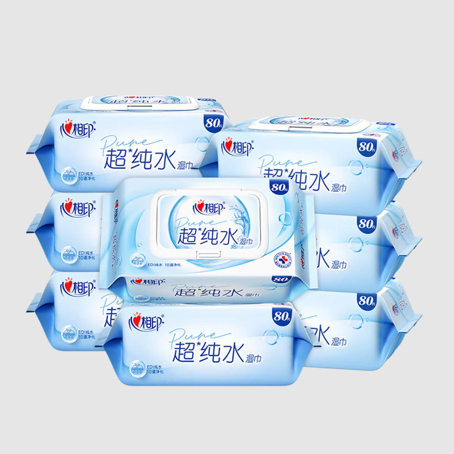 君航科技 心相印 EDI超纯水湿巾 80片*8包 湿纸巾 亲肤温和 无酒精