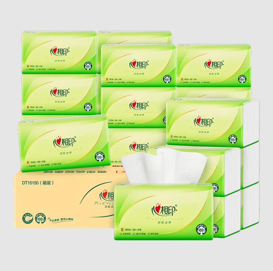 君航科技 心相印 抽纸 实验擦拭 面巾纸 茶语丝享 3层150抽*24包真S码 纸巾
