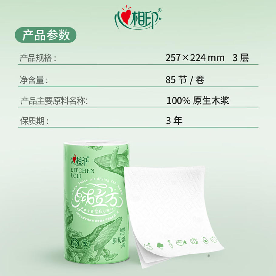 君航科技 心相印 绒立方 实验室擦拭 仪器设备擦拭 清洁纸 厨房卷纸 85节 单粒装 12倍吸油 锁水 可接触食物