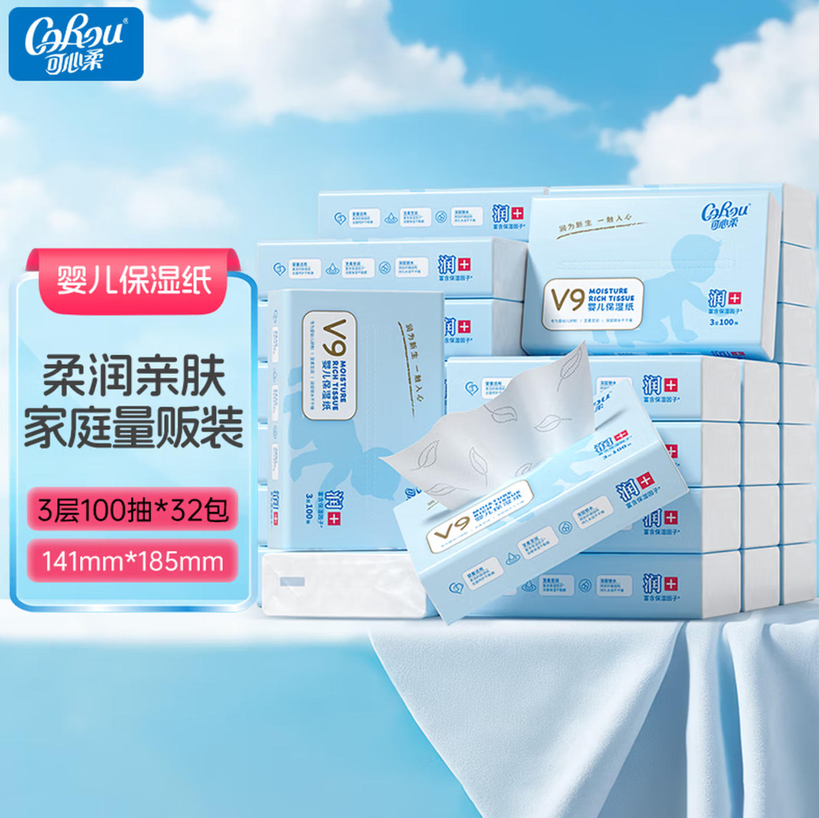 君航科技 可心柔(COROU)抽纸 实验仪器 擦拭 柔纸巾 3层M码100抽*32包 云柔巾 保湿纸 乳霜纸