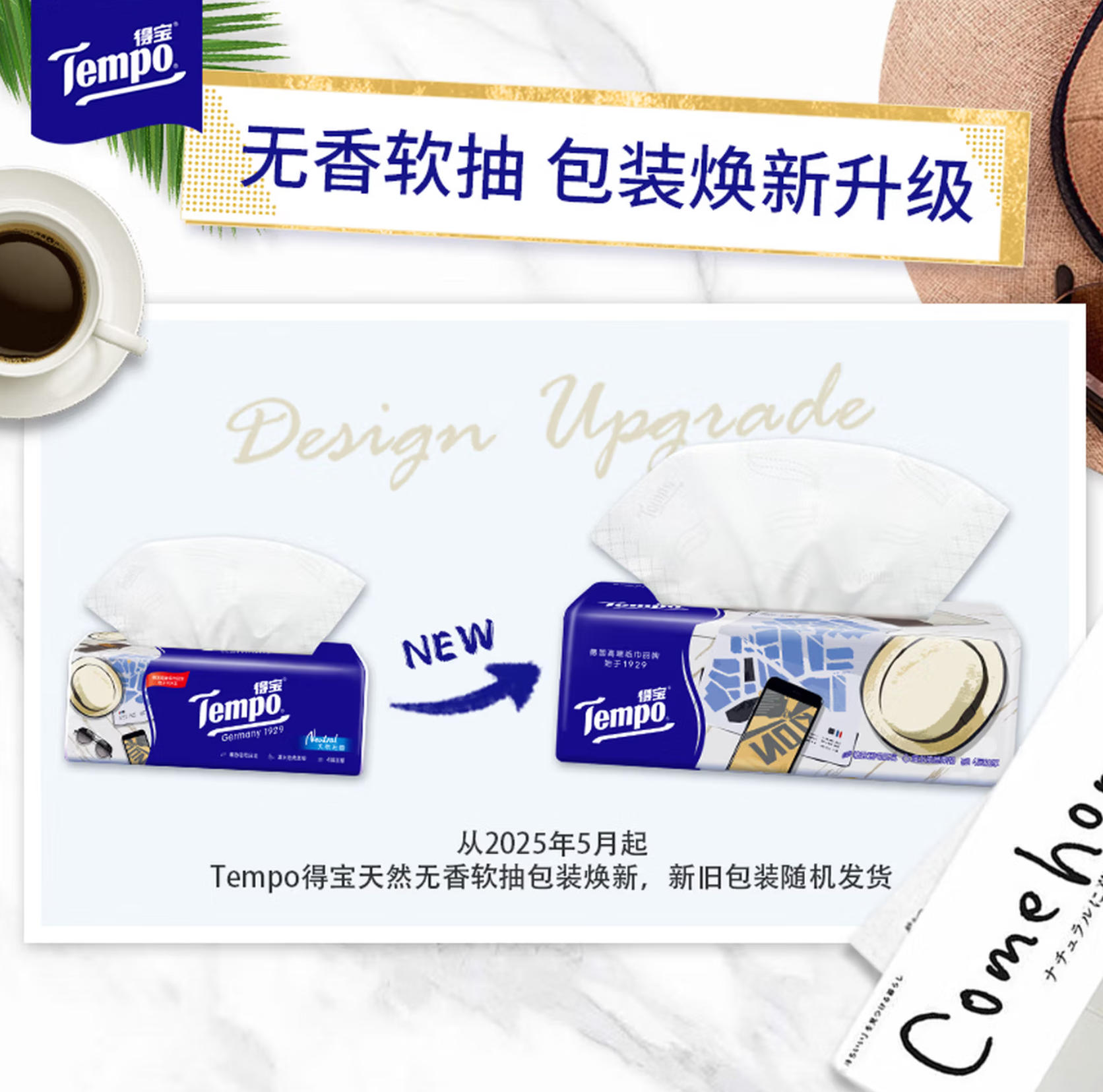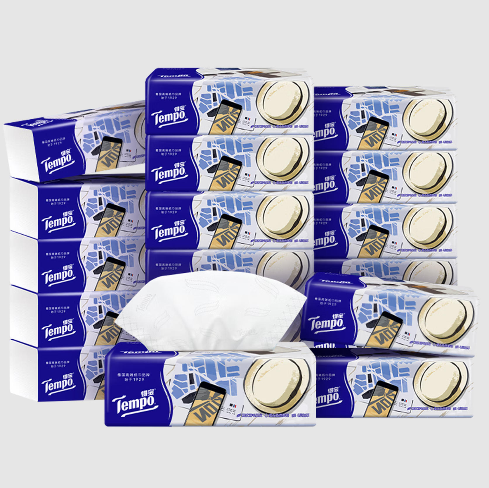 君航科技 得宝(TEMPO) 抽纸 实验擦拭 设备 仪器 M码 无香4层100抽*18包 新旧包装混发 纸巾 卫生纸