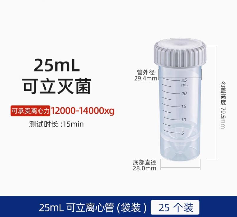 25ml离心管塑料高速无菌尖平底可立式螺旋拧盖离心管试管采样菌种分样瓶 灰盖 25个