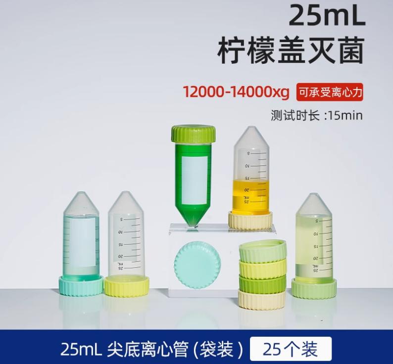 25ml离心管塑料高速无菌尖底螺旋拧盖离心管试管采样菌种分样瓶 柠檬盖 25个