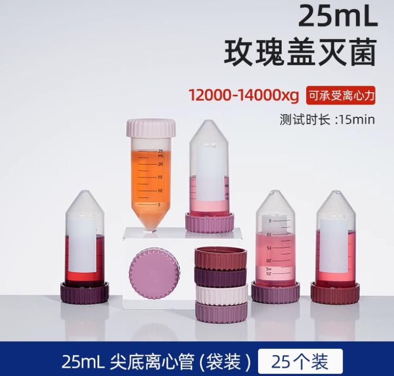 25ml离心管塑料高速无菌尖底螺旋拧盖离心管试管采样菌种分样瓶 玫瑰盖 25个