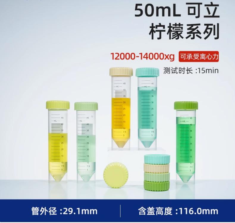 50ml离心管塑料高速无菌尖平底可立式螺旋拧盖离心管试管采样菌种分样瓶 柠檬盖 25个
