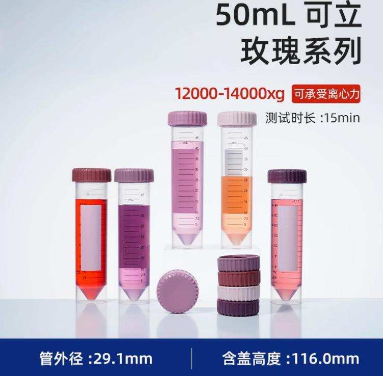 50ml离心管塑料高速无菌尖平底可立式螺旋拧盖离心管试管采样菌种分样瓶 玫瑰盖 25个