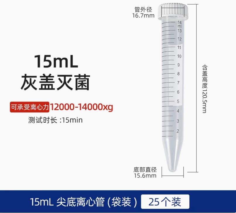 15ml离心管塑料高速无菌尖平底可立式螺旋拧盖离心管试管采样菌种分样瓶 灰盖 25个
