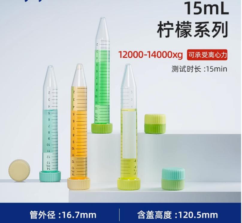 15ml离心管塑料高速无菌尖平底可立式螺旋拧盖离心管试管采样菌种分样瓶 柠檬盖 25个