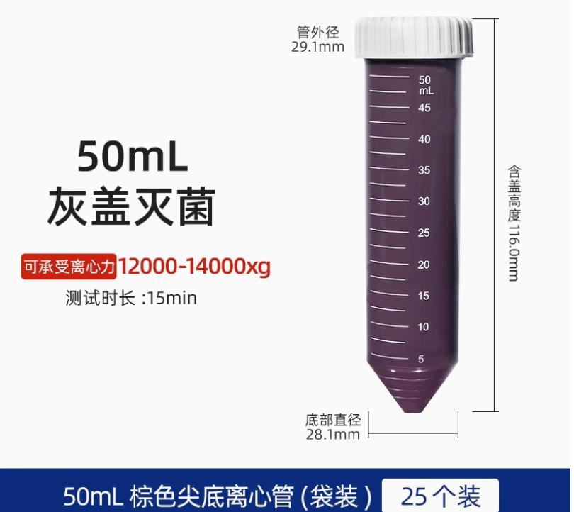 50ml离心管塑料高速无菌尖底螺旋拧盖离心管试管采样菌种分样瓶 棕色 25个