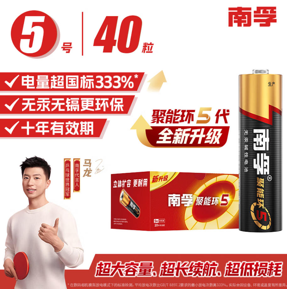 莱英办公 南孚 5号电池 40粒 五号碱性 聚能环5代