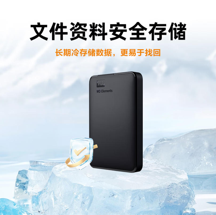 莱英办公 西部数据(WD)移动硬盘2TB USB3.0 元素系列 2.5英寸 机械硬盘 笔记本电脑外接 外置扩容备份 大容量家庭存储