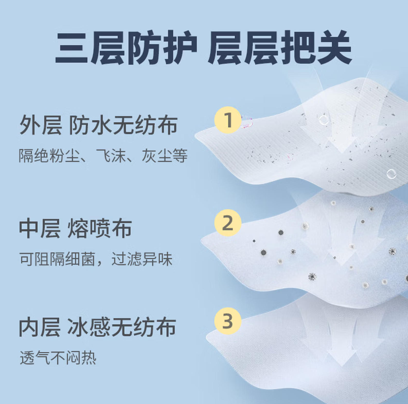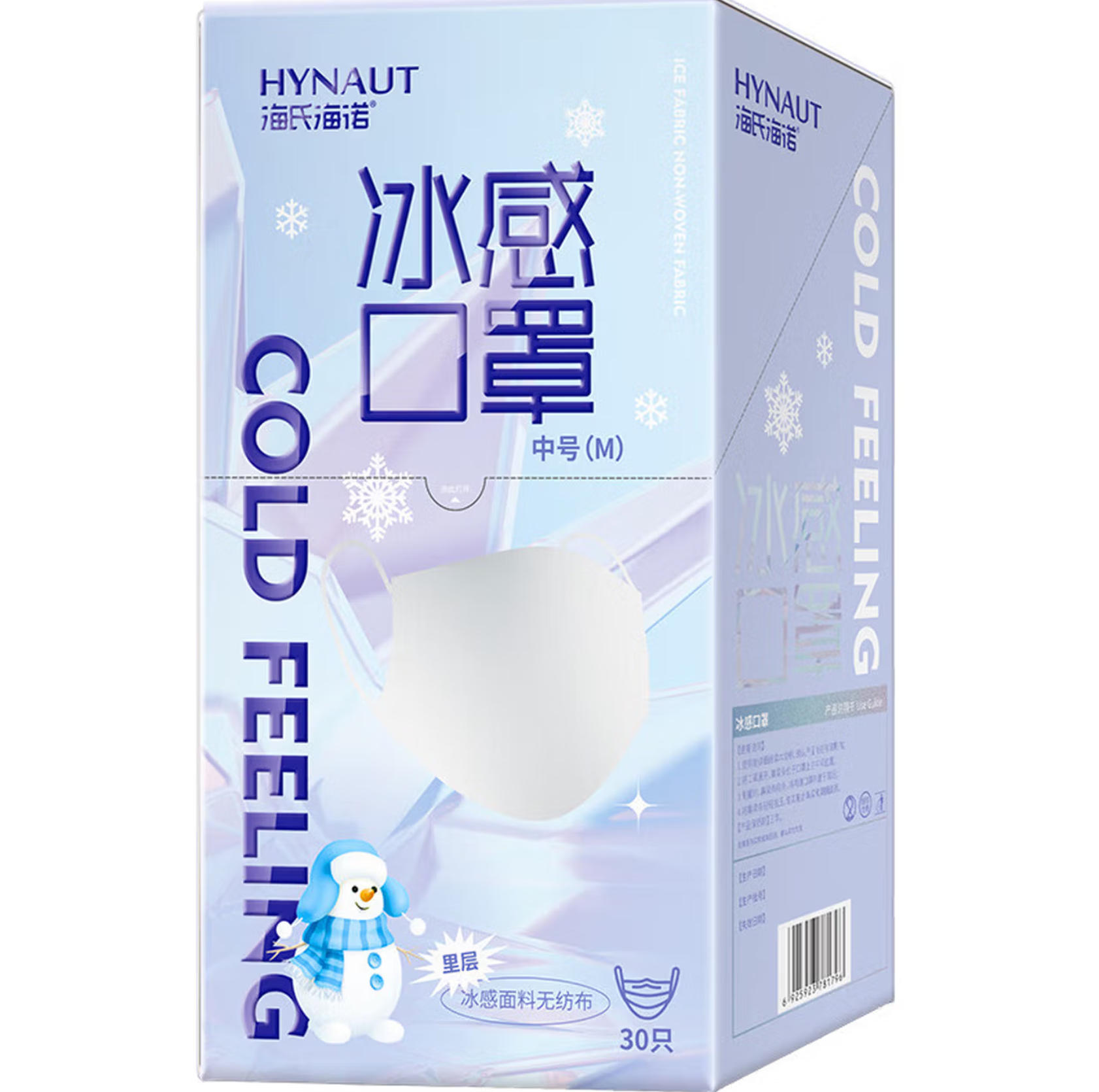 君航科技 海氏海诺 冰感 清凉 口罩 独立包装 实验防护 夏季透气 薄款冰感 一次性成人口罩 30只 透气 白色 防晒