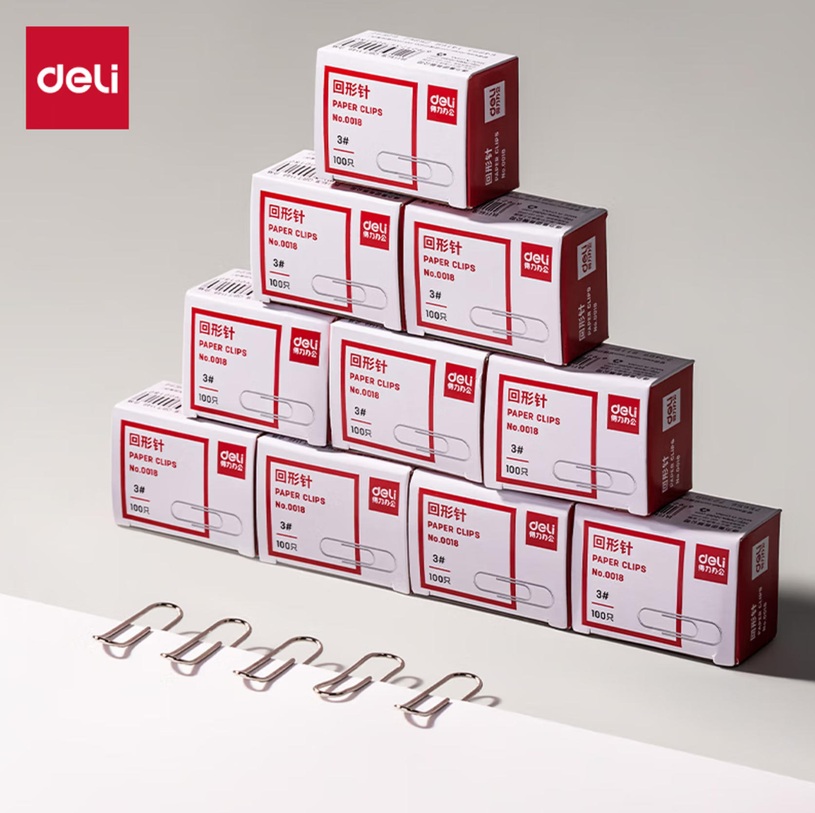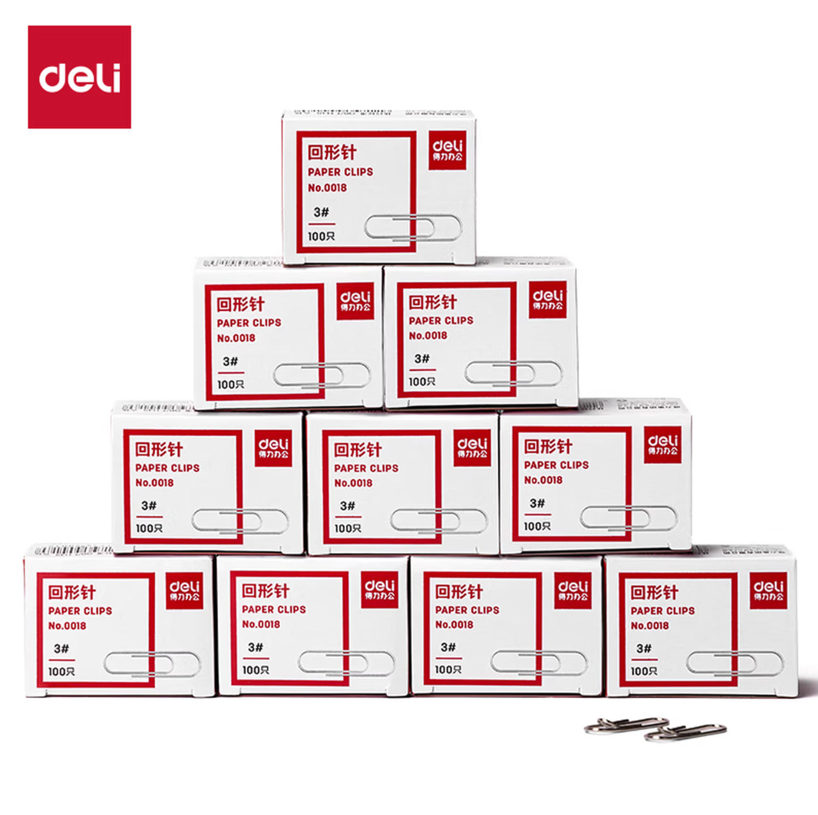 君航科技 得力(deli) 3#金属回形针 镀镍防锈曲别针 100枚/盒 29mm 10盒装 办公室具用品 P00018